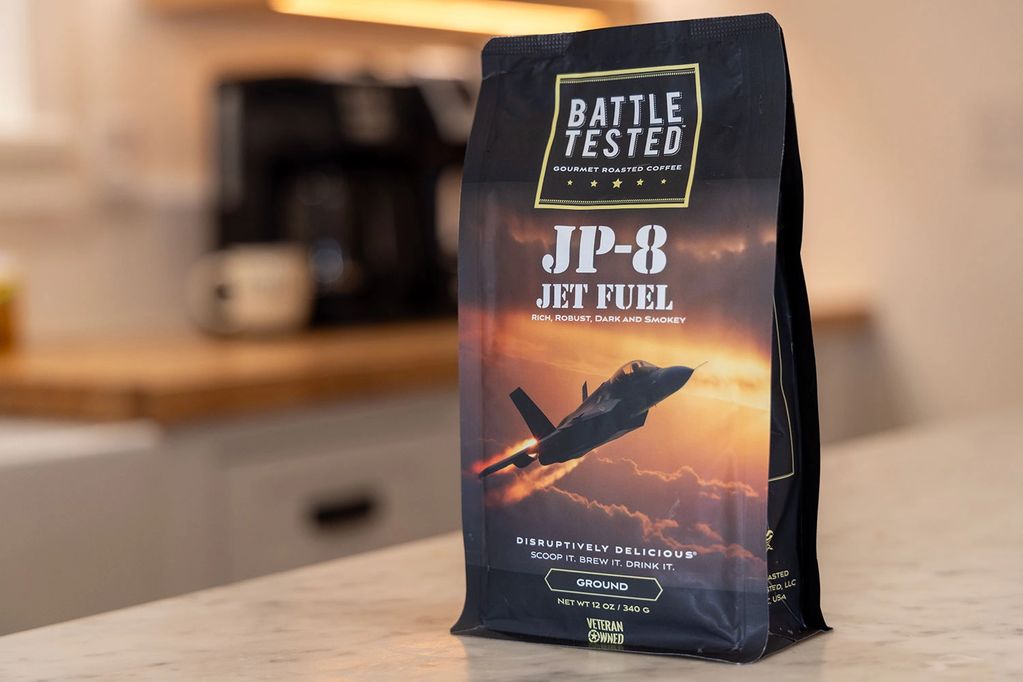 Battle Tested®JP-8 Jet Fuel is a smooth, rich, gourmet dark roast that will have your taste buds snapping to attention and saluting! The aroma, is just what you’ll taste, with smokey dark chocolate, rich caramel, and a slight nuttiness that makes you want to finish that first cup so you can get to the second. JP-8 Jet Fuel is the perfect coffee when you need to kick in those morning afterburners